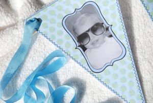 Blue (or pink) and green polka dots, in different festive patterns adorn this party kit theme. Pictures of your child will add the personal touch you’re looking for.